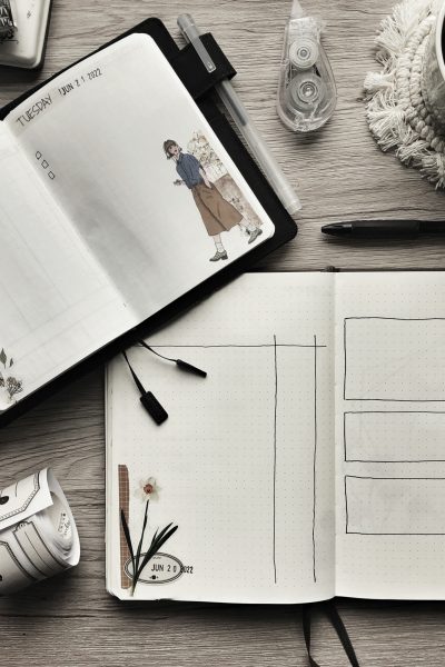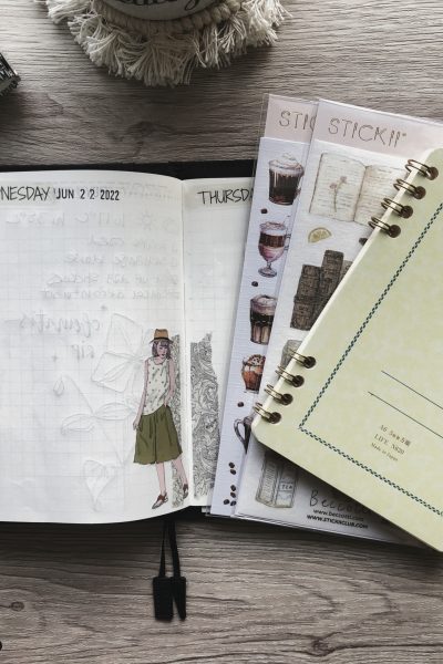 This is today’s notebook set-up. And how many a day in notebooks might start out. I open them up to the day’s page or a new blank page, and set them up for to-do lists, note-taking and project planning. The daily notebook is already pre-decorated and dated. Maybe it sounds more complex and time consuming than it really is. Each…